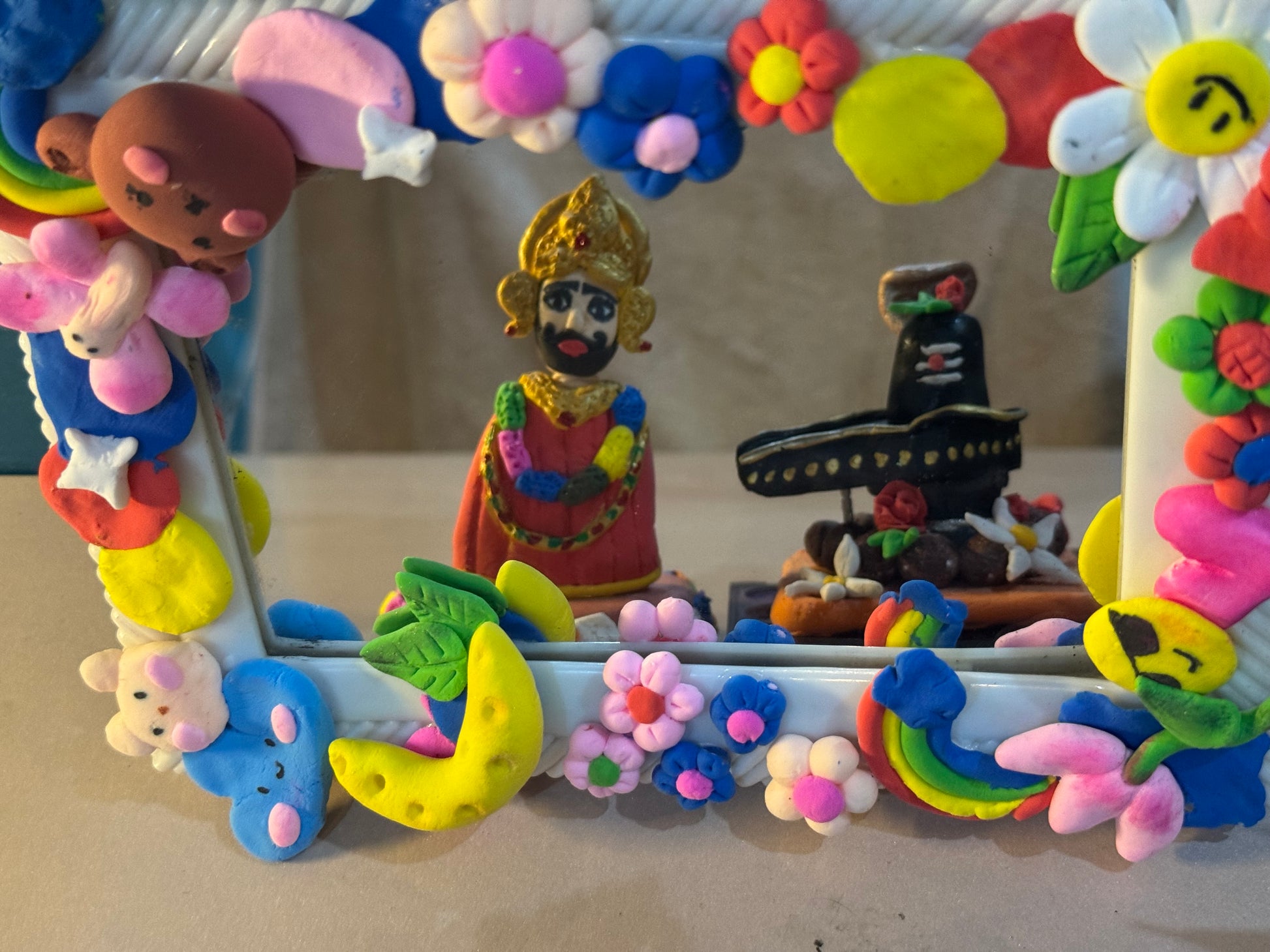 - 🌸 A colorful floral and celestial frame made entirely from hand-molded clay
