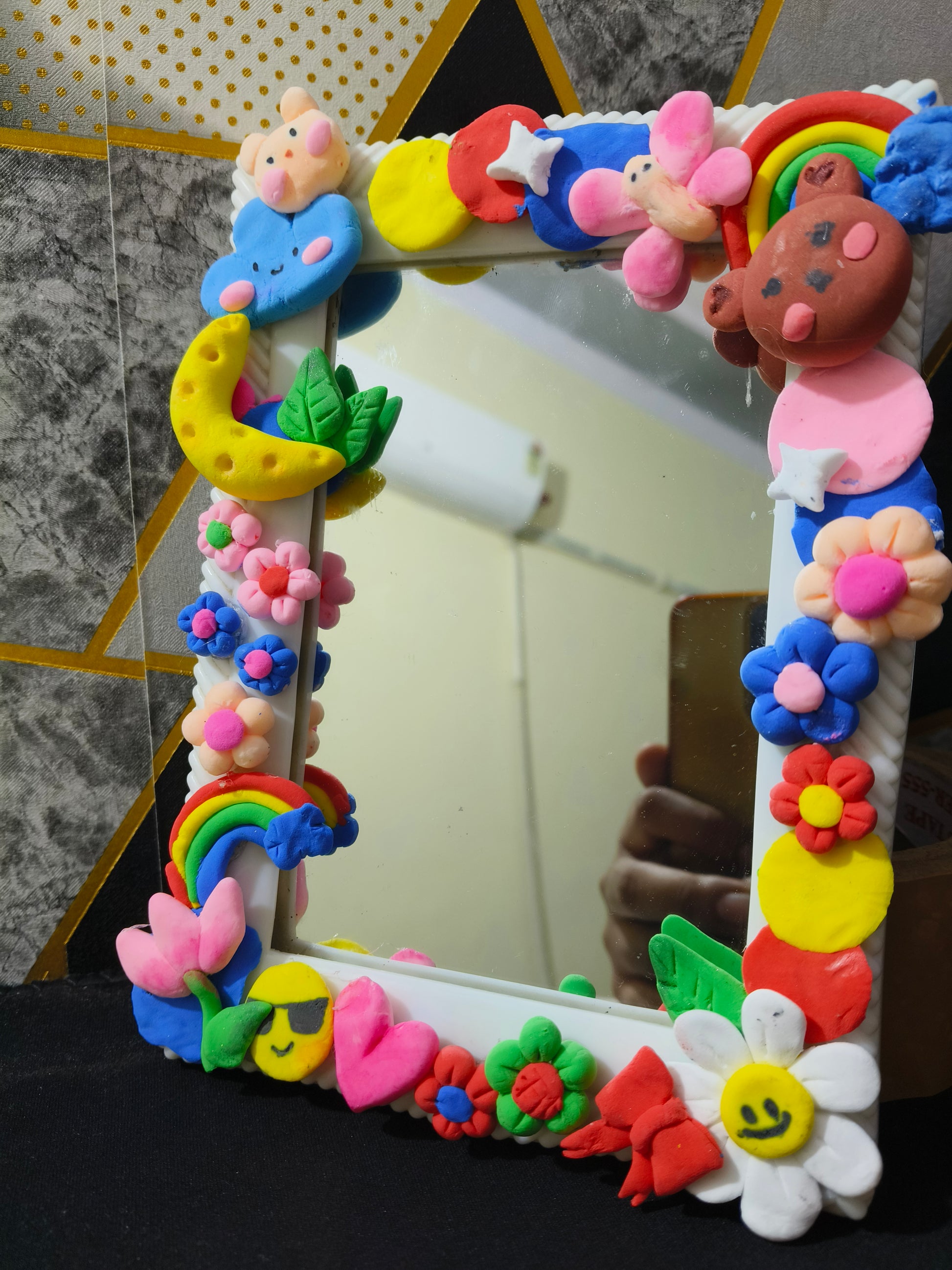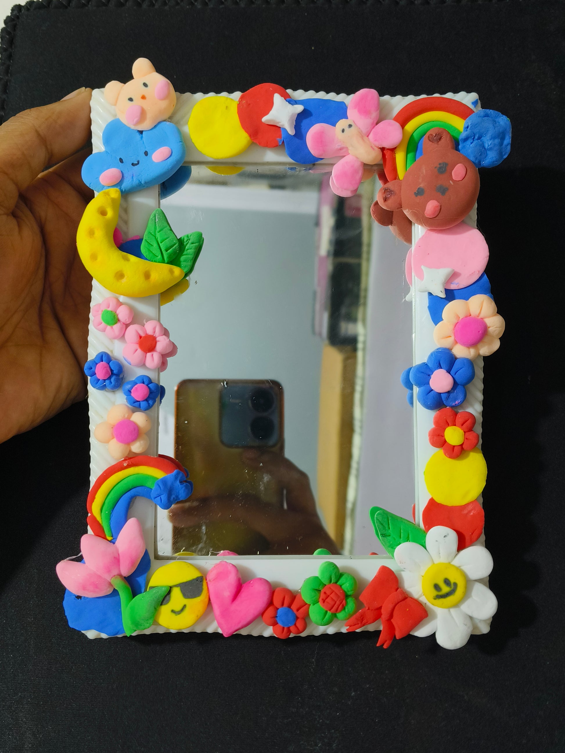Bring vibrant charm and spiritual vibes into your space with our Cute Mirror, a one-of-a-kind handmade creation! This clay-decorated mirror features: