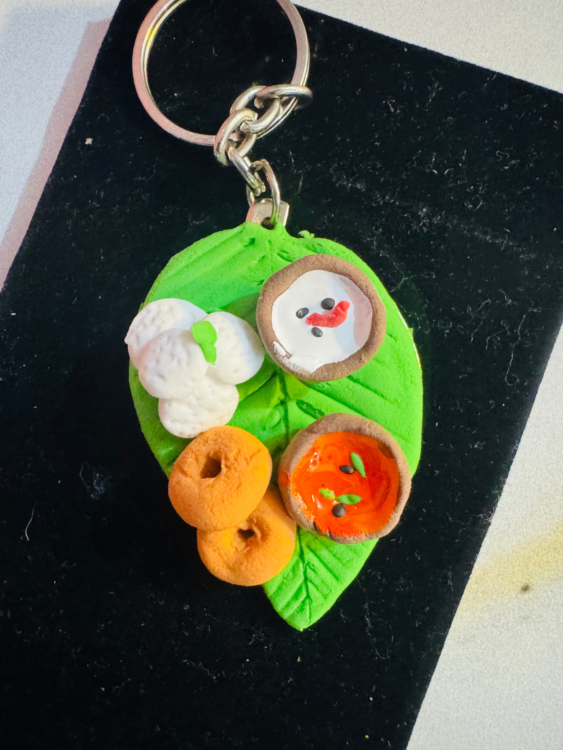 Mini South Indian Breakfast Keychain – Idli, Vada, Chutney & Sambar on Leaf
