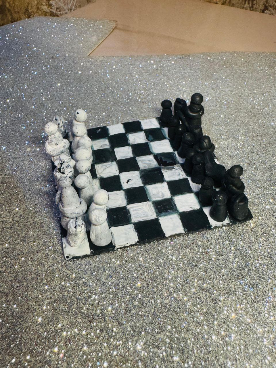 Each piece is carefully molded and hand-painted in classic black and white, placed on a charming 6x6 grid. Whether you're a chess lover or just looking for a unique aesthetic gift, this compact chess set fits right in – on your desk, coffee table, or even your pocket!