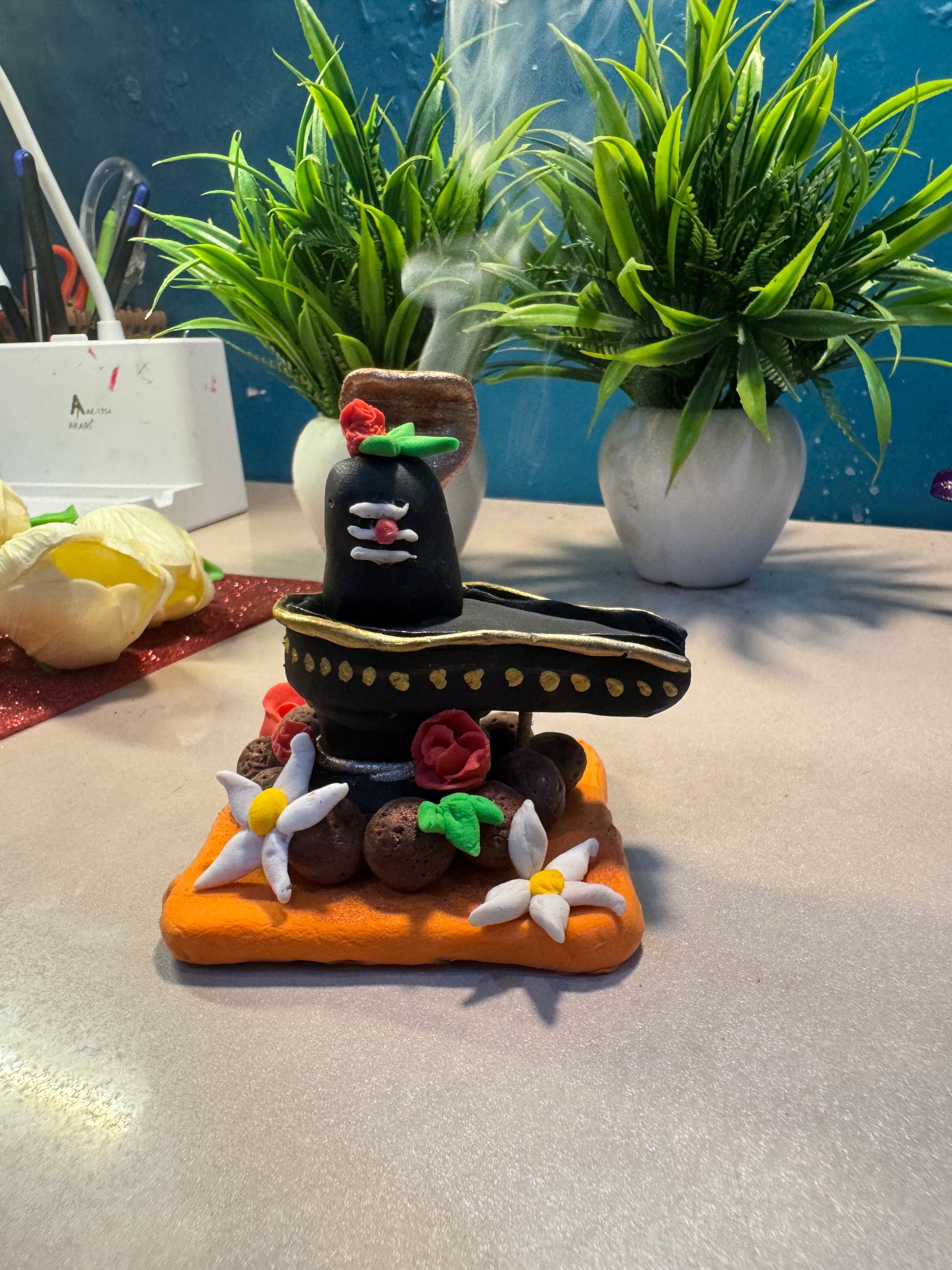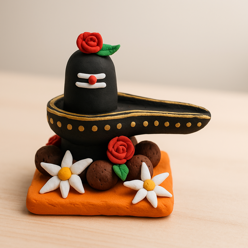 Handcrafted Clay Shivling with Floral Base – Miniature Décor Idol