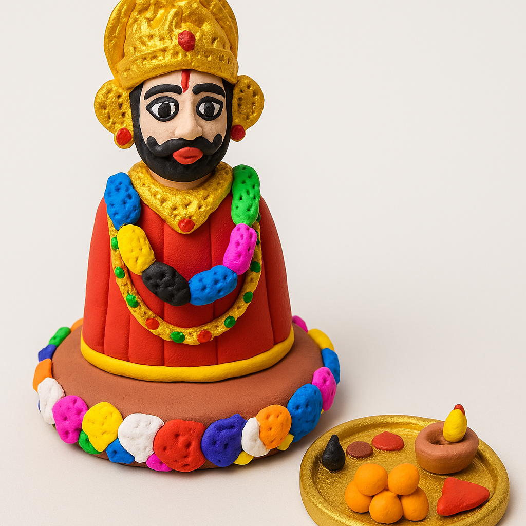 Shree Khatu Shyam Ji Clay Idol with Miniature Pooja Thali – Handcrafted Divine Art